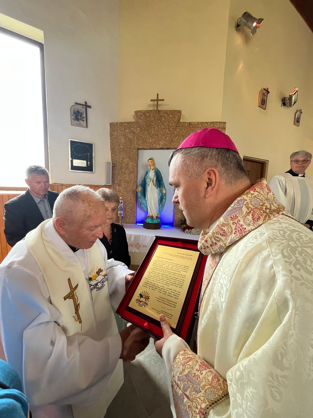 Odsłonięcie tablicy upamiętniającej posługę ks. bp. prof. dr. hab. Wiktora Wysoczańskiego.
